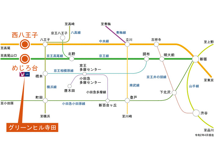 JR Chuo Line 『 Nishi Hachioji Station 』 17 minutes bus ( to『寺田センター』 bus stop) + 1 minutes walk JR Yokohama Line 『 Hachioji Minamino Station 』 12 minutes bus ( to『寺田センター』 bus stop) + 1 minutes walk |