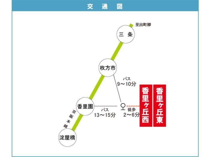 Keihan Main Line 『 Korien Station 』 13 minutes bus ( to『香里橋』 bus stop) + 2 minutes walk Keihan Main Line 『 Hirakata Koen Station 』 14 minutes bus ( to『香里橋』 bus stop) + 2 minutes walk |