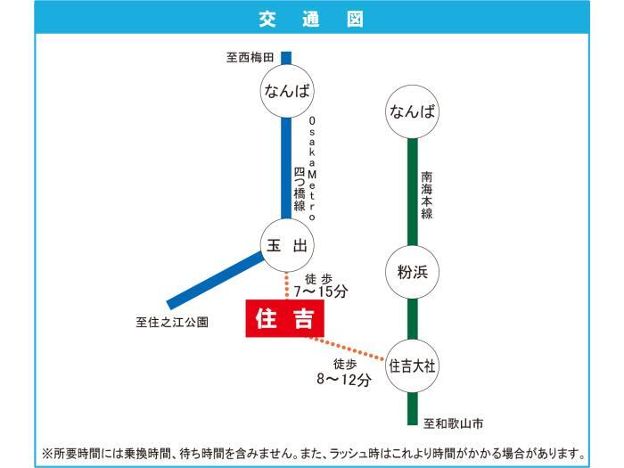Nankai Main Line 『 Sumiyoshi Taisha Station 』 + 8 minutes walk Hanban Electric Railroad Hanban Line 『 Sumiyoshi Station 』 + 7 minutes walk |