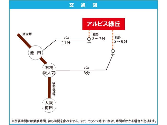Hankyu Takarazuka Line 『 Ikeda Station 』 11 minutes bus ( to『緑丘小学校前』 bus stop) + 2 minutes walk Hankyu Minoh Line 『 Sakurai Station 』 + 32 minutes walk |