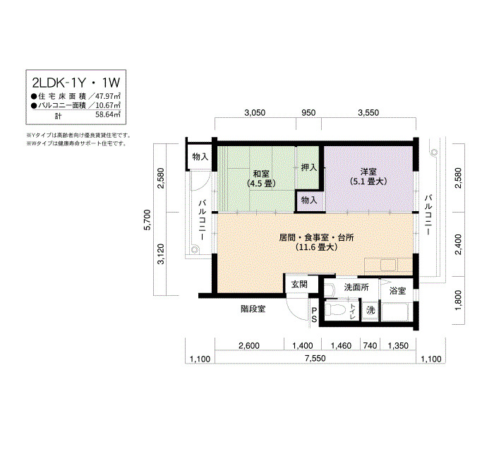 2LDK 61㎡ |