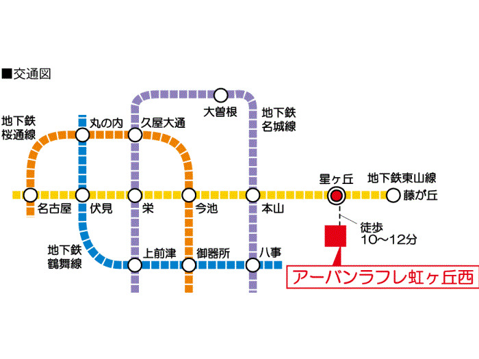 Nagoya Municipal Higashiyama Line 『 Issha Station 』 + 17 minutes walk Nagoya Municipal Higashiyama Line 『 Higashiyama Koen Station 』 + 22 minutes walk |