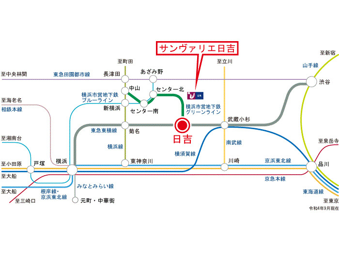 Tokyu Toyoko Line 『 Hiyoshi Station 』 + 19 minutes walk Tokyu Toyoko Line 『 Hiyoshi Station 』 14 minutes bus ( to『サンヴァリエ日吉』 bus stop) + 1 minutes walk |