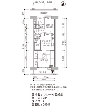 | Layout | 2DK | Size(sq. m) | 45㎡ |