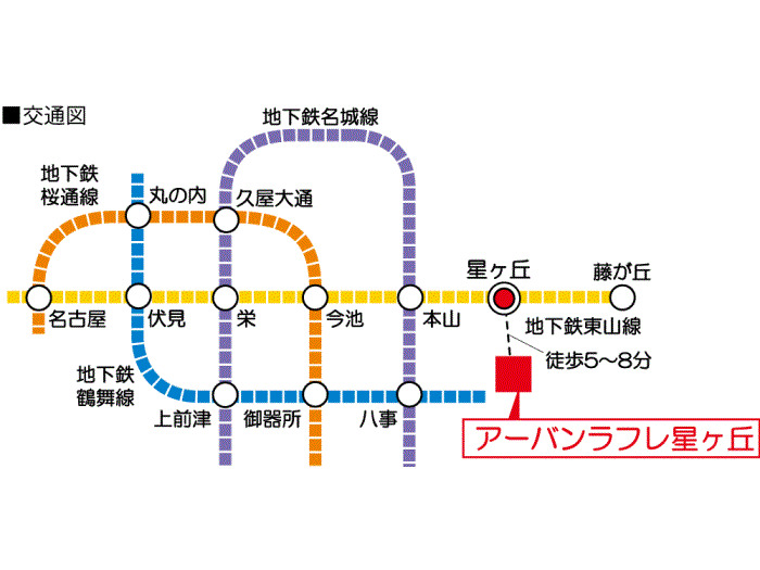 Nagoya Municipal Higashiyama Line 『 Issha Station 』 + 14 minutes walk Nagoya Municipal Higashiyama Line 『 Higashiyama Koen Station 』 + 19 minutes walk |