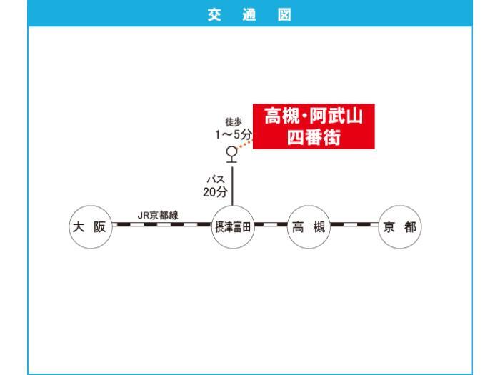 JR Tokaidou・Sanyou 『 Takatsuki Station 』 33 minutes bus ( to『公団阿武山』 bus stop) + 1 minutes walk Hankyu Kyoto Line 『 Tonda Station 』 13 minutes bus ( to『公団阿武山』 bus stop) + 1 minutes walk |