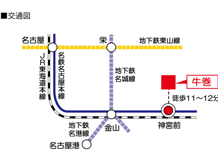 JR Tokai Line 『 Atsuta Station 』 + 15 minutes walk Nagoya Municipal Meijo Line 『 Kanayama Station 』 12 minutes bus ( to『堀田通五丁目』 bus stop) + 2 minutes walk |