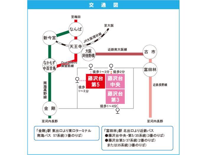 Nankai Koya Line 『 Osaka-sayamashi Station 』 + 16 minutes walk Kintetsu Nagano Line 『 Tondabayashi Station 』 10 minutes bus ( to『藤沢台五丁目』 bus stop) + 1 minutes walk |