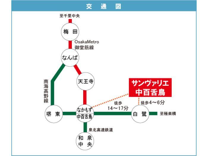 Osaka Municipal Midosuji Line 『 Nakamozu Station 』 + 14 minutes walk Nankai Koya Line 『 Nakamozu Station 』 + 15 minutes walk |