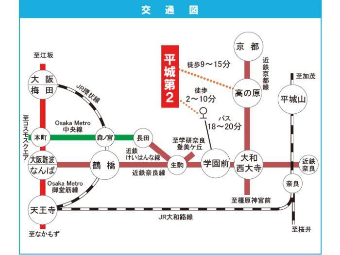 Kintetsu Nara Line 『 Gakuen Mae Station 』 18 minutes bus ( to『右京三丁目』 bus stop) + 2 minutes walk Kintetsu Nara Line 『 Kintetsu Nara Station 』 26 minutes bus ( to『神功4丁目』 bus stop) + 6 minutes walk |