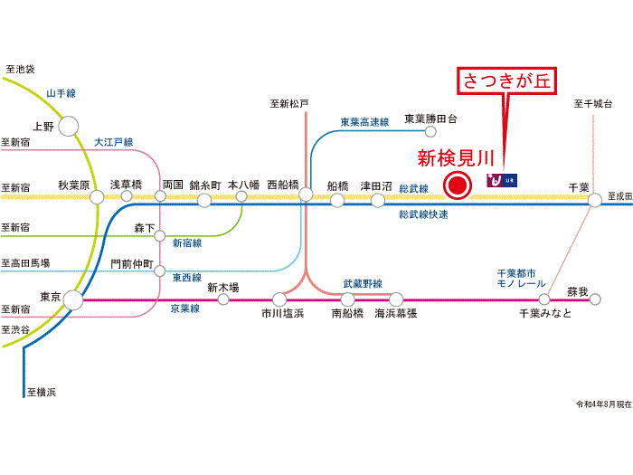 JR Sobu Line 『 JB37 Inage Station 』 20 minutes bus ( to『さつきが丘第二』 bus stop) + 2 minutes walk Keisei Chiba Line 『 Kemigawa Station 』 + 41 minutes walk |