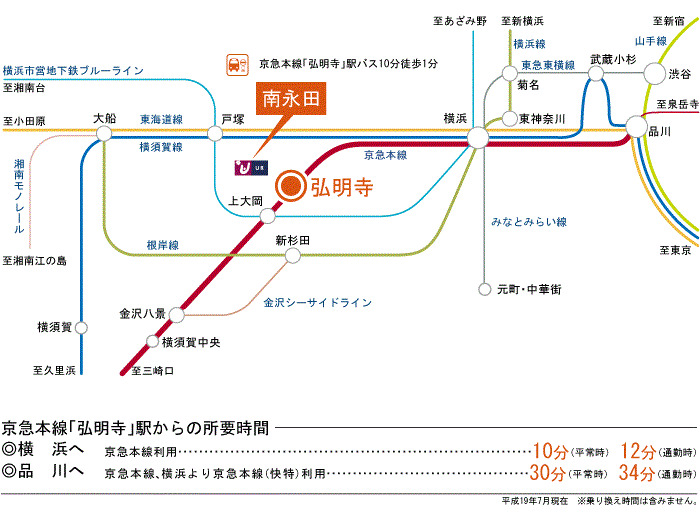 Yokohama Municipal Subway Blue Line 『 Gumyoji Station 』 8 minutes bus ( to『南永田団地』 bus stop) + 1 minutes walk Keikyu Main Line 『 KK42 Idogaya Station 』 + 19 minutes walk JR Yokosuka Line 『 Hodogaya Station 』 3 minutes bus ( to『南永田団地』 bus stop) + 14 minutes walk |