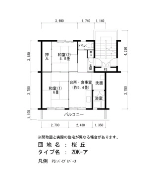 | Layout | 2DK | Size(sq. m) | 45㎡ |