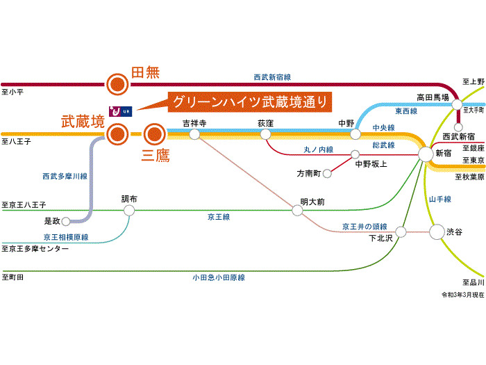 JR Chuo Line 『 Musashisakai Station 』 5 minutes bus ( to『至誠学舎東京前』 bus stop) + 1 minutes walk JR Chuo Line 『 Mitaka Station 』 10 minutes bus ( to『新町一丁目』 bus stop) + 1 minutes walk Seibu Shinjuku Line 『 SS17 Tanashi Station 』 4 minutes bus ( to『新町一丁目』 bus stop) + 2 minutes walk |