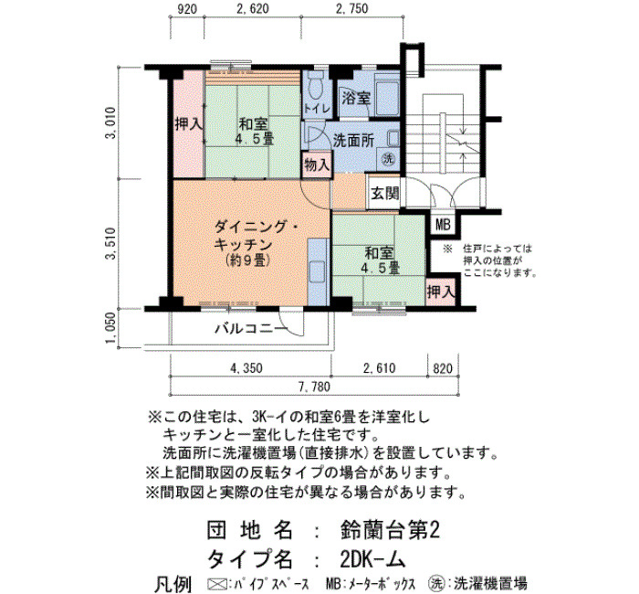 Layout 2DK Size(sq. m) 46㎡