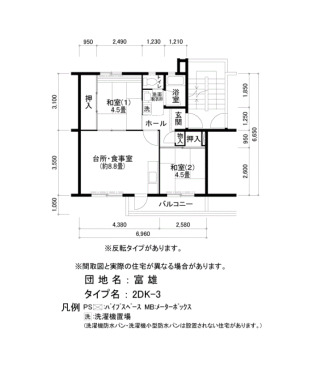 | Layout | 2DK | Size(sq. m) | 45㎡ |