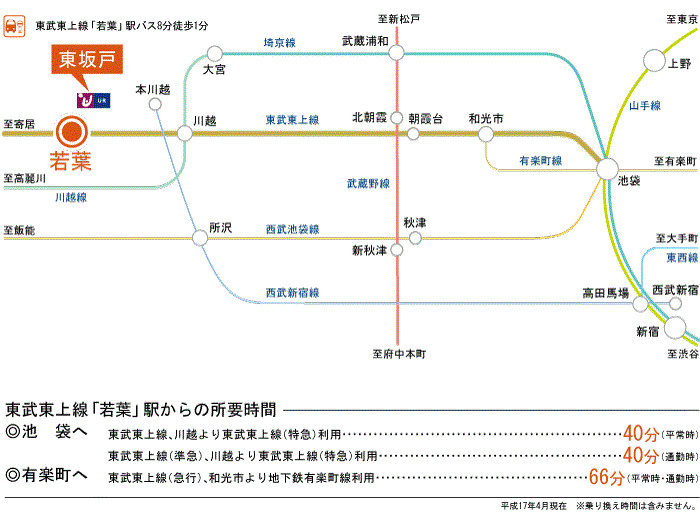 Tobu Tojo Line 『 Kawagoe Station 』 30 minutes bus + 1 minutes walk Tobu Tojo Line 『 Tsurugashima Station 』 + 34 minutes walk |