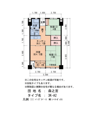 | Layout | 3K | Size(sq. m) | 47㎡ |