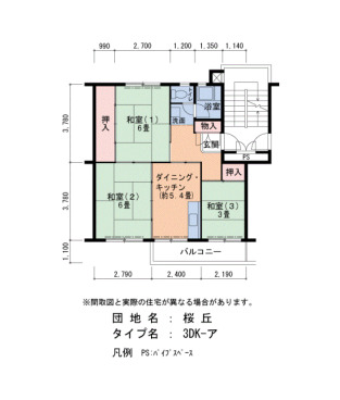 | Layout | 3DK | Size(sq. m) | 54㎡ |