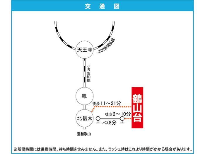 JR Hanwa Line Kita Shinoda Station 2 minutes bus ( to『鶴山台センター』 bus stop) + 2 minutes walk