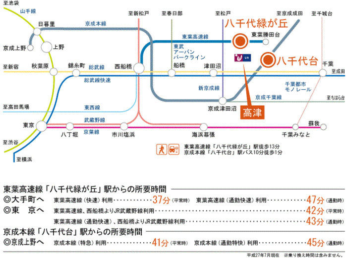 Keisei Main Line 『 KS29 Yachiyodai Station 』 7 minutes bus ( to『団地三叉路』 bus stop) + 1 minutes walk Toyo High-Speed Railway 『 Yachiyo Chuo Station 』 + 36 minutes walk |