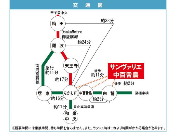 Osaka Municipal Midosuji Line 『 Nakamozu Station 』 + 14 minutes walk Nankai Koya Line 『 Nakamozu Station 』 + 15 minutes walk |