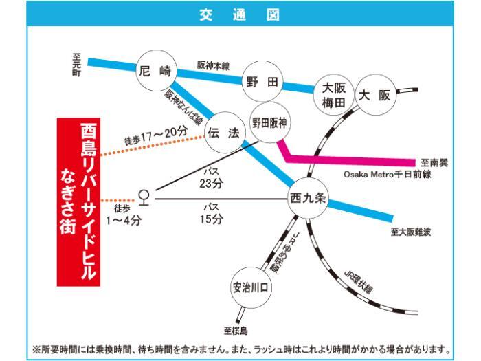 JR Osaka Loop Line 『 Nishi Kujo Station 』 15 minutes bus ( to『酉島車庫前』 bus stop) + 1 minutes walk Osaka Municipal Sennichimae Line 『 Noda Hanshin Station 』 23 minutes bus ( to『酉島車庫前』 bus stop) + 1 minutes walk |