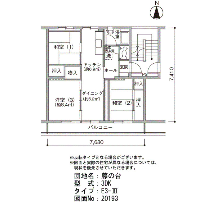 Layout 3DK Size(sq. m) 56㎡