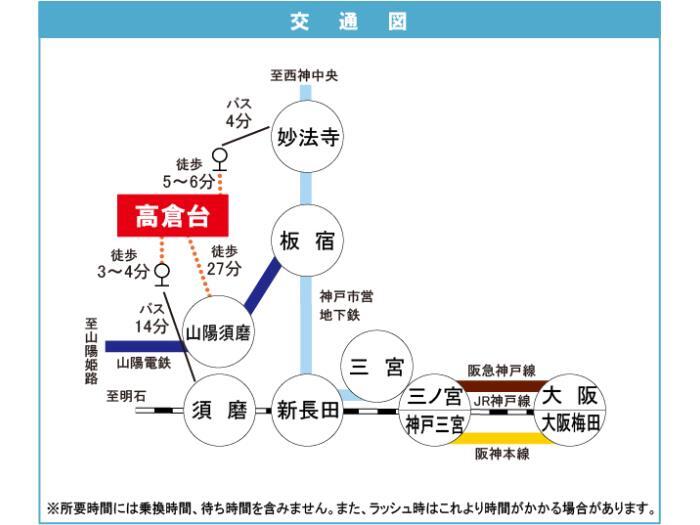 Kobe Municipal Seishin / Yamanote Line 『 Myohoji Station 』 4 minutes bus ( to『高倉台』 bus stop) + 5 minutes walk |