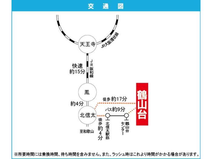 JR Hanwa Line 『 Kita Shinoda Station 』 2 minutes bus ( to『鶴山台センター』 bus stop) + 2 minutes walk |