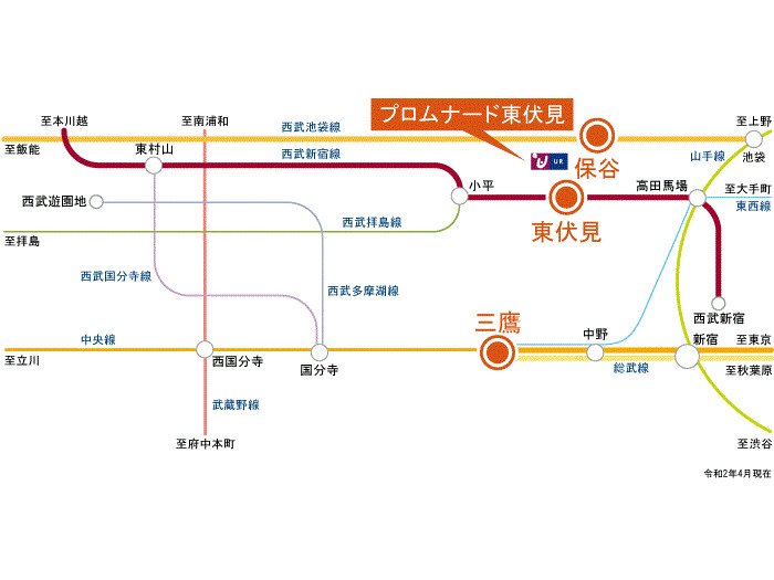 JR Chuo Line 『 Mitaka Station 』 13 minutes bus ( to『保谷中学校』 bus stop) + 4 minutes walk Seibu Ikebukuro Line 『 SI12 Hoya Station 』 6 minutes bus ( to『天神山』 bus stop) + 4 minutes walk |