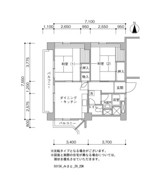 Layout 2DK Size(sq. m) 56㎡