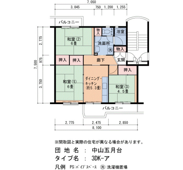 | Layout | 3DK | Size(sq. m) | 61㎡ |