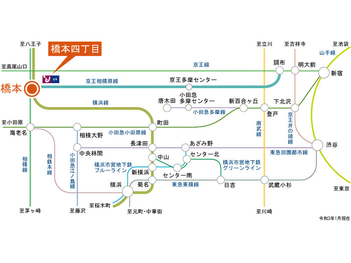 JR Yokohama Line 『 Hashimoto Station 』 + 10 minutes walk Keio Sagamihara Line 『 Tamasakai Station 』 8 minutes bus ( to『寿町 』 bus stop) + 3 minutes walk |