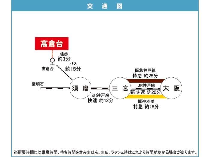 Kobe Municipal Seishin / Yamanote Line 『 Myohoji Station 』 4 minutes bus ( to『高倉台』 bus stop) + 5 minutes walk |
