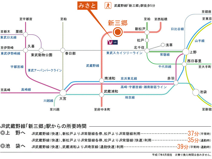 JR Musashino Line 『 Yoshikawa Minami Station 』 + 12 minutes walk JR Musashino Line 『 Shin Misato Station 』 1 minutes bus ( to『公園前[三郷市]』 bus stop) + 1 minutes walk |