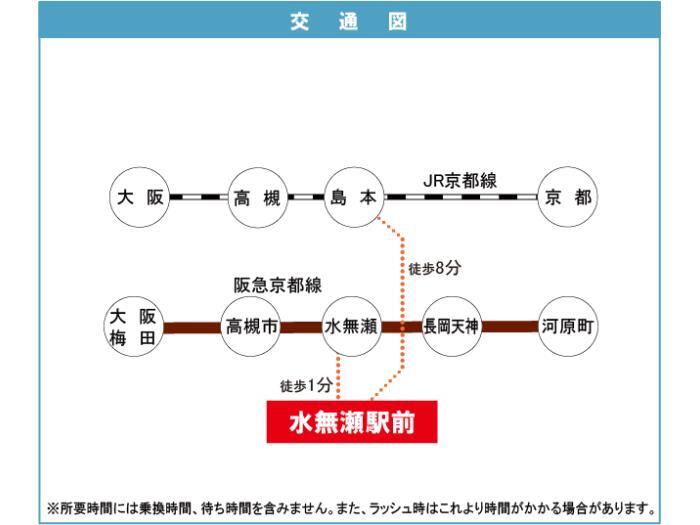 JR Tokaidou・Sanyou 『 Shimamoto Station 』 + 8 minutes walk Hankyu Kyoto Line 『 Ohyamazaki Station 』 + 24 minutes walk |