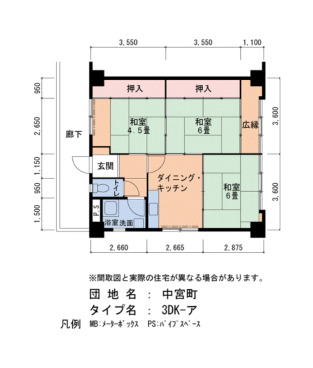 | Layout | 3DK | Size(sq. m) | 58㎡ |
