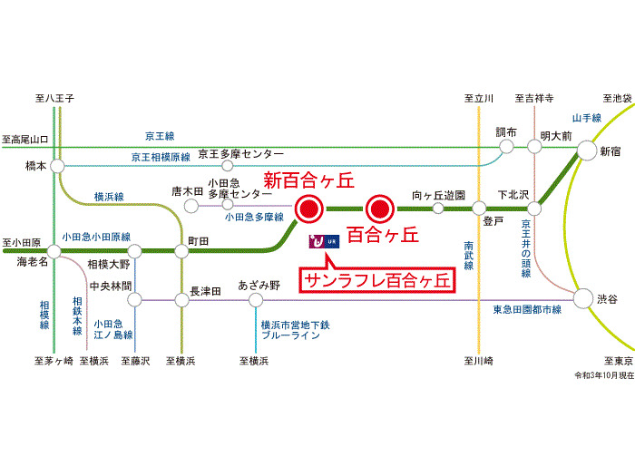 Odakyu Odawara Line 『 Shin Yurigaoka Station 』 + 10 minutes walk Tokyu Denentoshi Line 『 Azamoino Station 』 41 minutes bus ( to『管理事務所前』 bus stop) + 2 minutes walk |