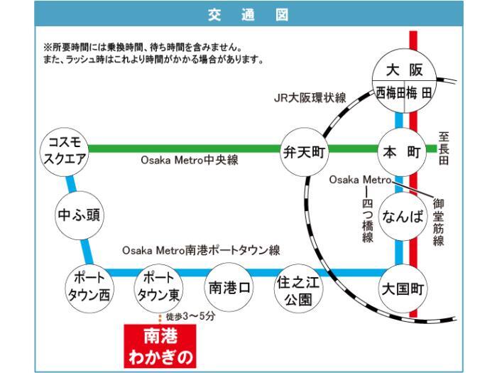 Osaka City Nanko Port Town Line 『 Port Town Nishi Station 』 + 6 minutes walk Osaka City Nanko Port Town Line 『 Nakafutou Station 』 + 16 minutes walk |