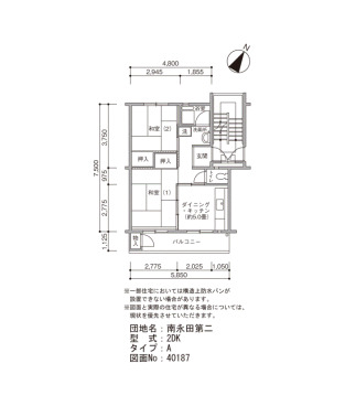 | Layout | 2DK | Size(sq. m) | 43㎡ |