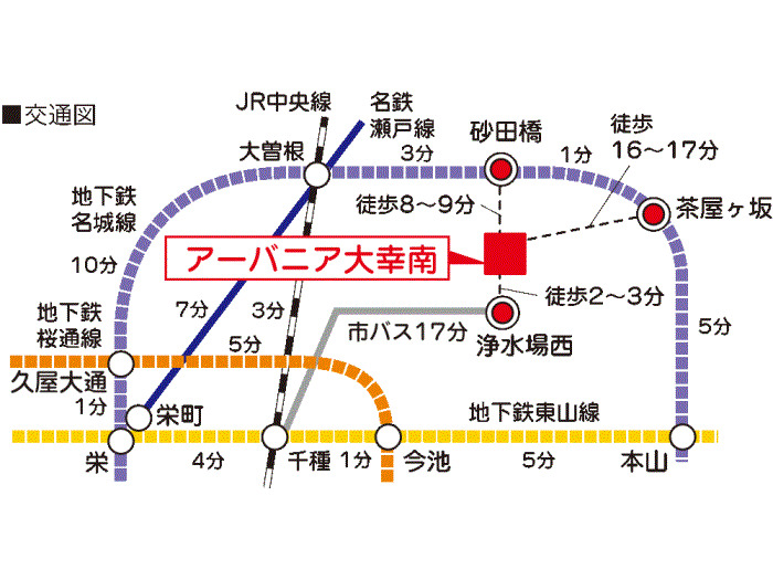 Nagoya Municipal Meijo Line 『 Ozone Station 』 + 25 minutes walk Nagoya Municipal Meijo Line 『 Chayagasaka Station 』 + 16 minutes walk |