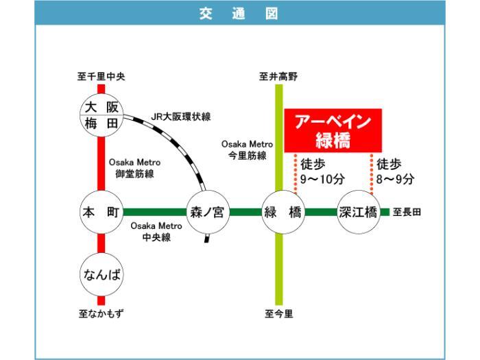 Osaka Municipal Chuo Line 『 Midori Bashi Station 』 + 9 minutes walk Osaka Municipal Sennichimae Line 『 Shin-fukae Station 』 + 20 minutes walk |