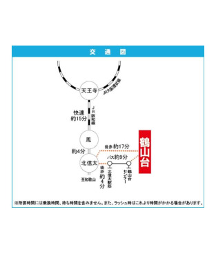 JR Hanwa Line 『 Kita Shinoda Station 』 2 minutes bus ( to『鶴山台センター』 bus stop) + 2 minutes walk |