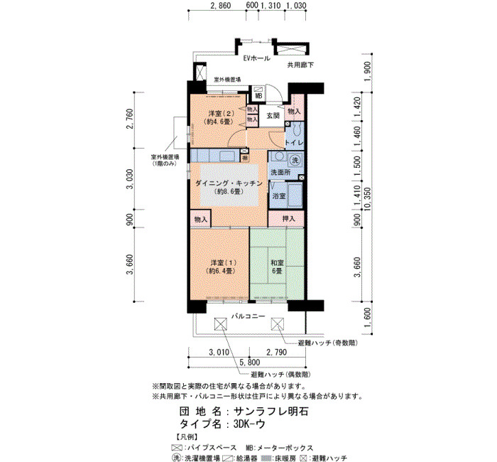 | 3LDK | 71 | ¥93,500~98,300 |