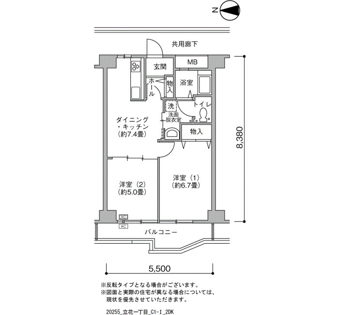 | 2DK | 48~53 | ¥88,400~114,700 | 661 |