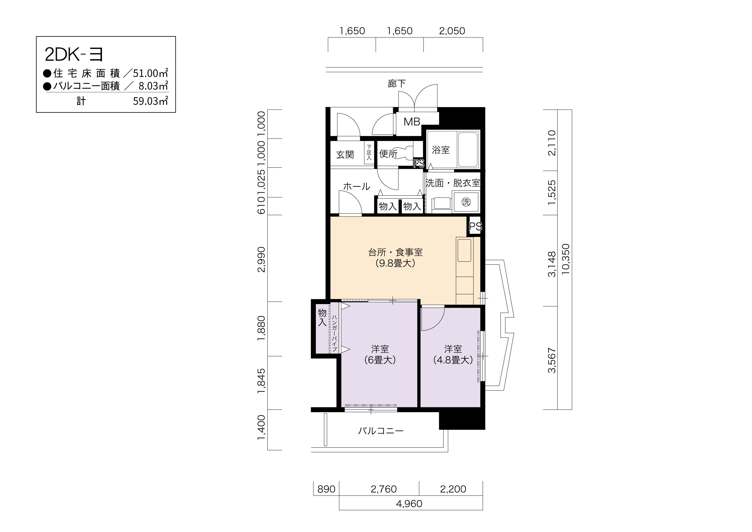 | 2DK | 51 | ¥106,300~121,200 | 8 |