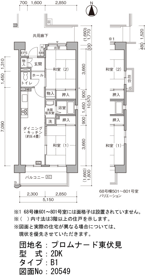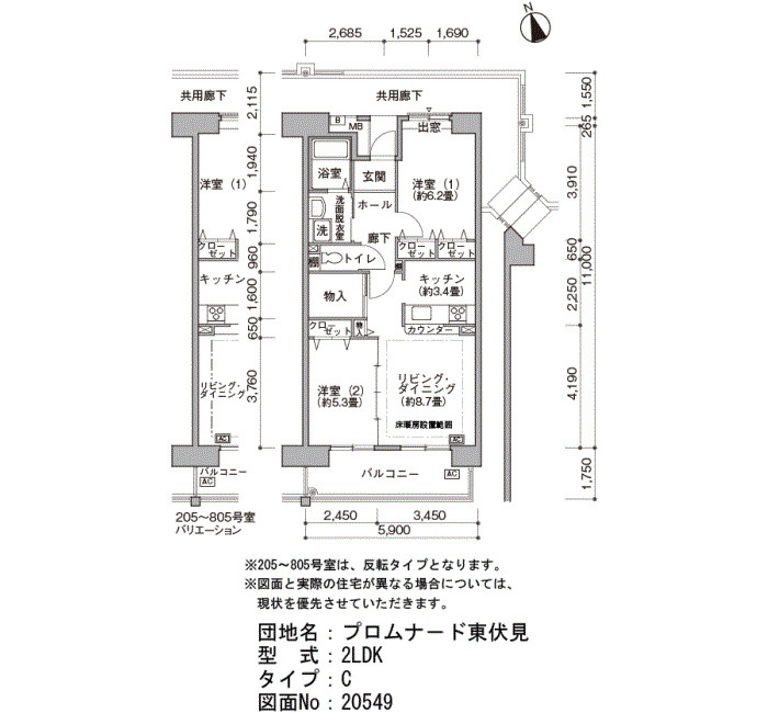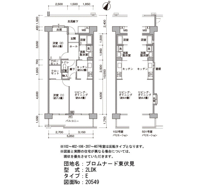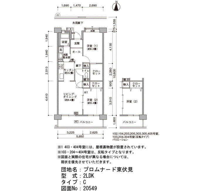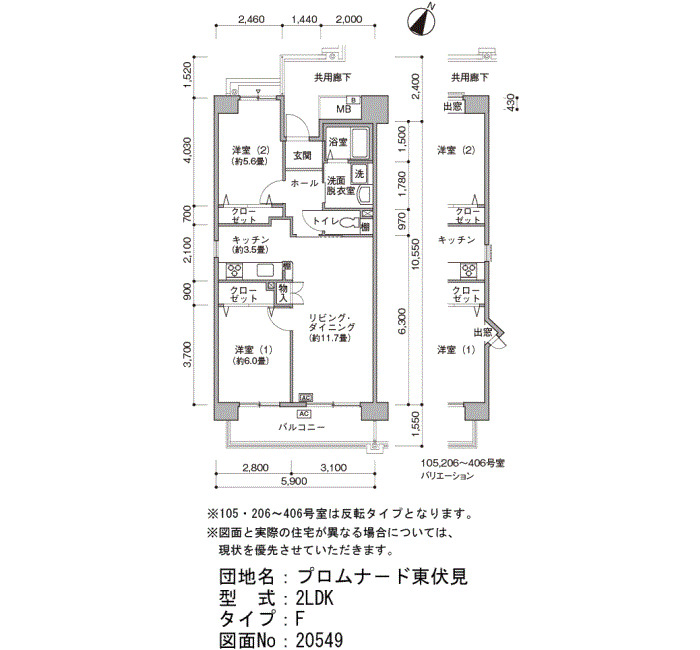 | 2DK (シルバ住宅形式) | 55~57 | 5 |
