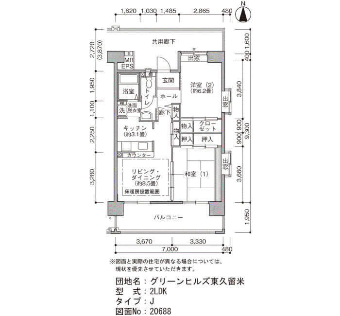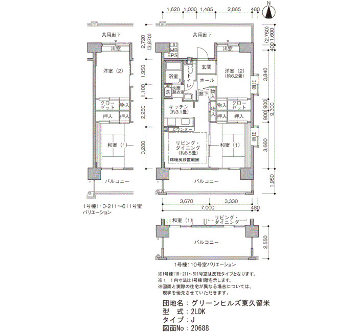 | 2LDK | 62~74 | ¥108,800~145,200 | 110 |