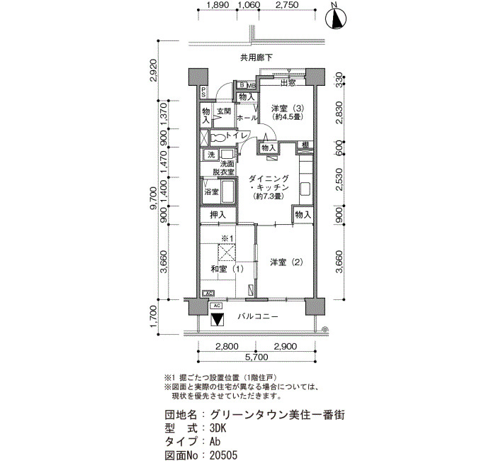 | 3DK | 57~63 | 120 |